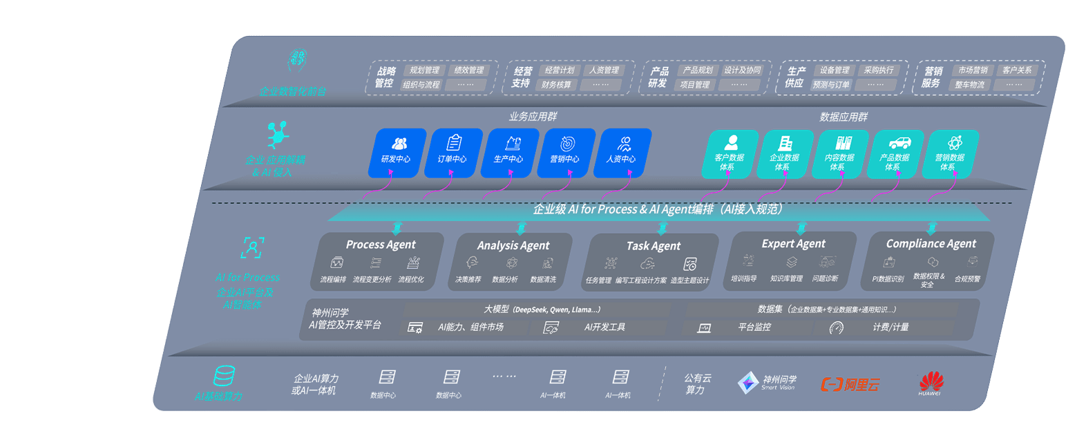 PA直营问学智车解决方案是一套基于AI技术的汽车行业智能化系统,,覆盖从底层算力到顶层AI应用的全栈方案。。方案由算力层、、模型层和应用层组成:算力层,,,,方案支持多种一体机配置,,,,具备云端灵活部署、、、多云适配以及动态优化计算资源的能力;模型层,,,PA直营问学平台版提供了企业级AI应用一站式构建与管理平台,,支持基于后训练强化技术的汽车企业专属模型的训练、、、评测和运营;应用层,,PA直营问学DeepSeek版提供包括超级员工、、智能招采、、智能营销、、、、智能客服、、、AI for BI等一系列解决方案,,可助力汽车行业实现数字化转型,,,,让管理更智能、、、、响应更敏捷。。